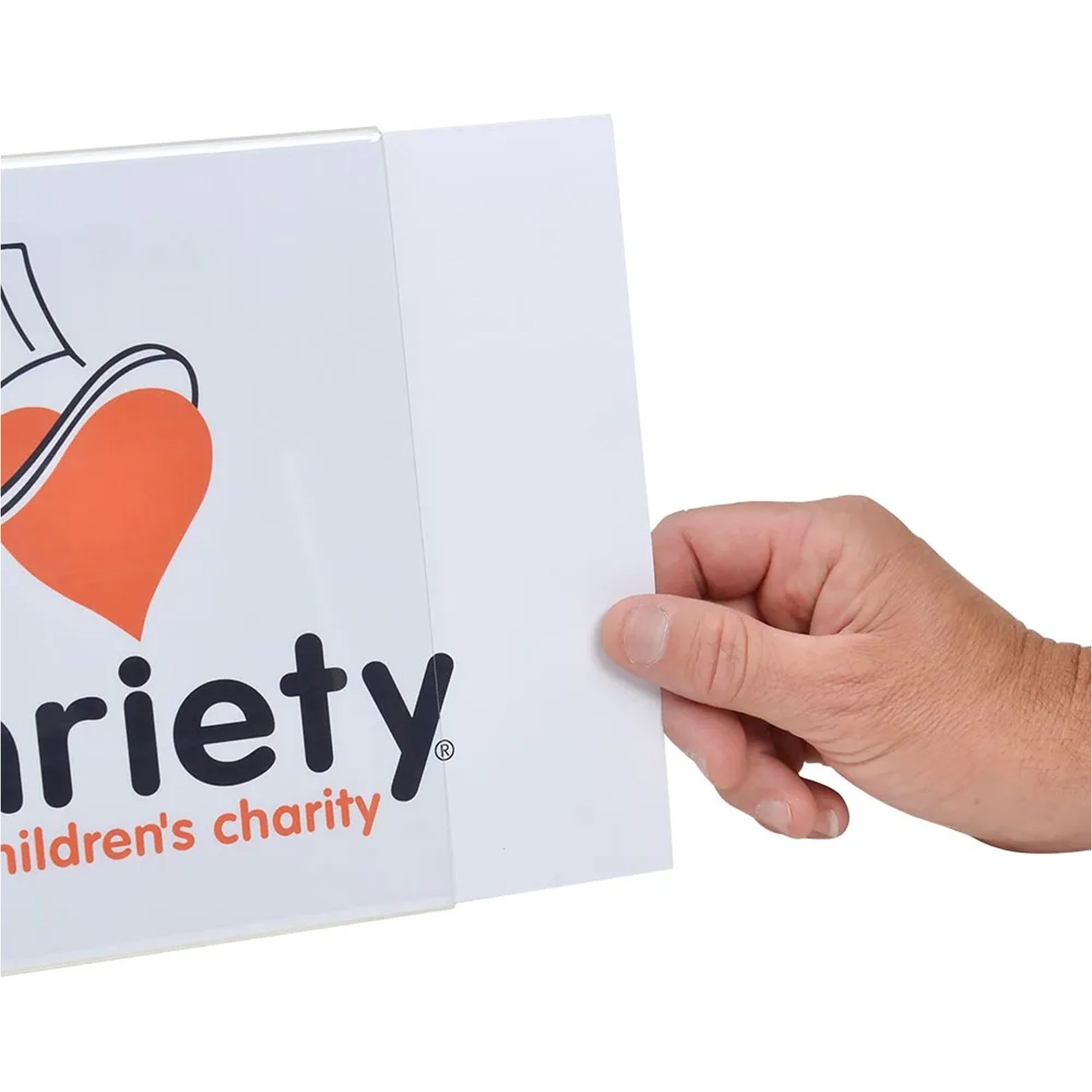 **KAĞIT YERLEŞTİRME KOLAYLIĞI**: Diğer ucuz plastik tabela tutucuların aksine, kağıt yerleştirmenin zor olduğu veya kağıdın kolayca düştüğü ürünler yerine, standımız kağıt yerleştirmenizi çok kolay hale getirir ve tabela kaymaz.