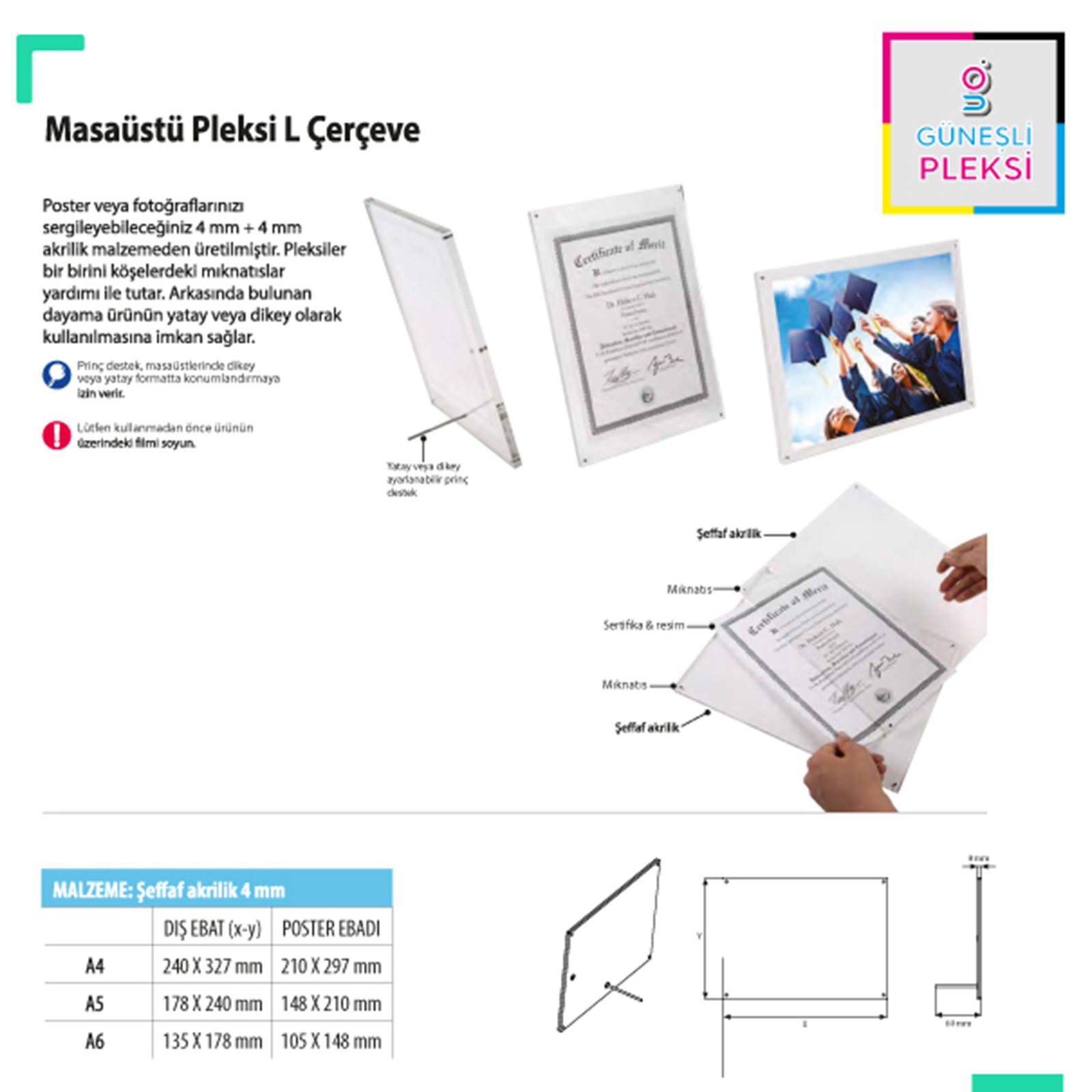Ofisinizde, mağazanızda ya da evinizde profesyonel ve şık bir sunum arıyorsanız, bu özel tasarlanmış masaüstü pleksi çerçeve tam size göre!